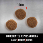 La fórmula de este pienso incorpora ingredientes de origen animal de presa completa, incluyendo pescado, órganos y espinas, aprovechando las partes más nutritivas y sabrosas para brindar a los gatos una nutrición excepcional. Con un impresionante 85% de ingredientes de calidad de origen animal y un recubrimiento de hígado liofilizado irresistiblemente sabroso, esta dieta destaca por su calidad y sabor insuperables.