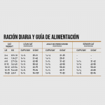 | Peso del gato | Gato delgado (gr/día) | Exceso de peso (gr/día) | Gato senior (gr/día) |