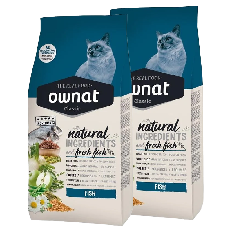 Ownat Fish Plus es una opción de alta calidad diseñada para gatos adultos de todas las razas. Este pienso premium se elabora con pescado fresco, lo que lo convierte en una elección excepcional para cuidar la salud de la piel y mantener un pelaje suave y brillante. Su formulación única incluye un aporte adicional de ácidos grasos esenciales Omega 3 y 6, que son vitales para la salud cutánea y la apariencia del pelaje de tu gato.