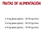3-4 kg (peso gato) ; 50-70 (gr/día)
