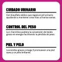 Control del peso: Proporcionar L-Carnitina a los gatos contribuye a favorecer el aprovechamiento de la grasa como fuente de energía, lo cual ayuda a preservar su peso ideal. Esta propiedad biológica es un principio vital para el bienestar de los felinos. Por otra parte, se trata de un nutriente indispensable para dicha especie, ya que favorece el restablecimiento de un balance energético saludable; esto es muy importante, ya que muchos gatos sufren a edades tempranas de obesidad u otros inconvenientes similares debido a la inactividad y la alimentación desequilibrada, características de los felinos de compañía. Gracias a la L-carnitina, los gatos pueden beneficiarse de una nutrición adecuada que mejora su calidad de vida.
