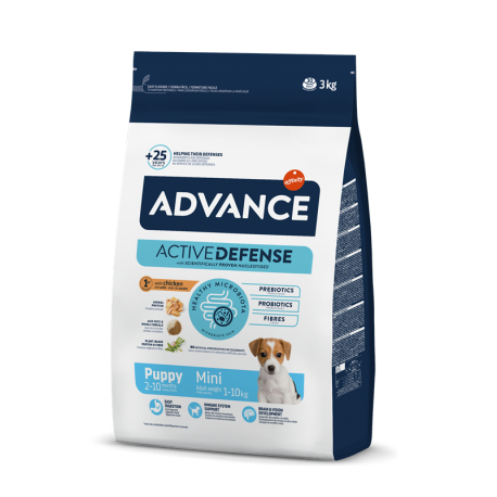 Enriquecido con ácidos grasos omega-3, vitaminas y minerales esenciales, el Advance Puppy Mini se destaca por su contribución al bienestar de los cachorros. La croqueta, diseñada específicamente para adaptarse a la mandíbula de cachorros pequeños, garantiza una experiencia alimentaria cómoda y placentera.