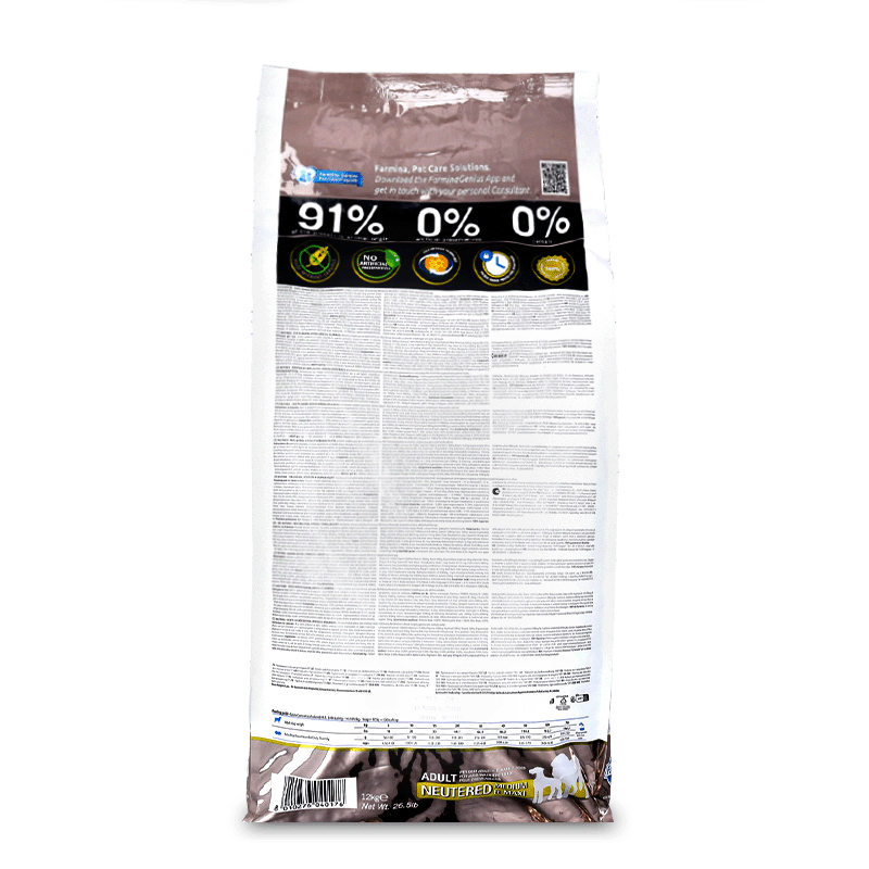 Alimento monoproteico premium para perros castrados: Ayuda a mantener un peso óptimo.