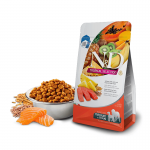 Salmón (20%), proteínas de salmón deshidratadas (20%), espelta (12%), avena (12%), aceite de pescado (de arenque), proteínas de arenque deshidratadas, pulpa de remolacha deshidratada, zanahoria deshidratada, harina de alfalfa, inulina, fructo-oligosacáridos, extracto de levadura (fuente de manano-oligosacáridos), plátano deshidratado (0,5%), kiwi deshidratado (0,5%), mango deshidratado (0,5%), papaya deshidratada (0,5%), piña deshidratada (0,5%), espinacas deshidratadas, cáscaras y semillas de psyllium, cloruro sódico, levadura de cerveza deshidratada, cúrcuma, extracto de aloe vera, glucosamina, sulfato de condroitina.