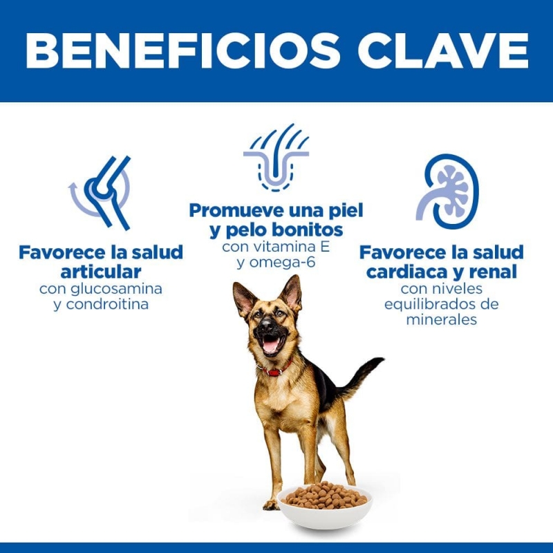 Este alimento seco está especialmente formulado para razas medianas y proporciona una nutrición que favorece el mantenimiento de la energía, la inmunidad y la salud de los órganos vitales en perros de 7 años en adelante. Es importante elegir un alimento adecuado en esta etapa de la vida de tu mascota, y Hill's™ Science Plan™ ofrece una solución que tu perro disfrutará mientras se beneficia de los nutrientes esenciales para una vida saludable y activa.