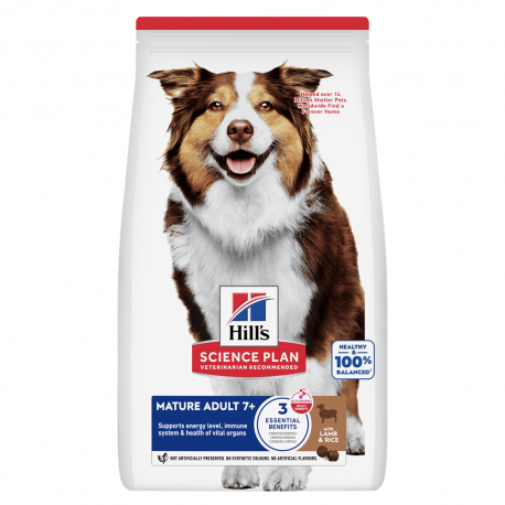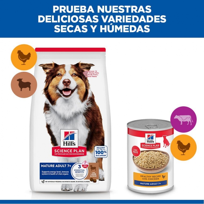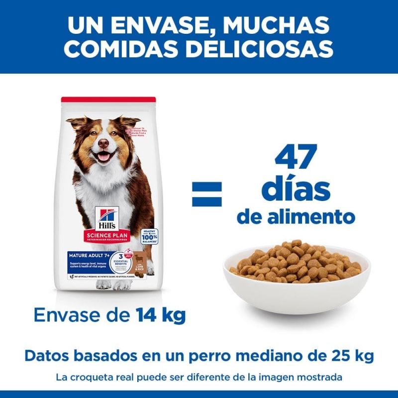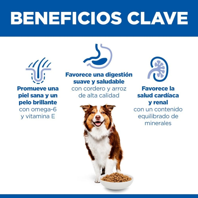 Hill's™ Science Plan™ MEDIUM ALIMENTO PARA PERROS MAYORES con CORDERO (8%) y ARROZ (6%) es la opción excelente para perros medianos de 7 años en adelante. Este alimento completo está diseñado para brindar beneficios significativos a tu mascota en su etapa de adultez avanzada.