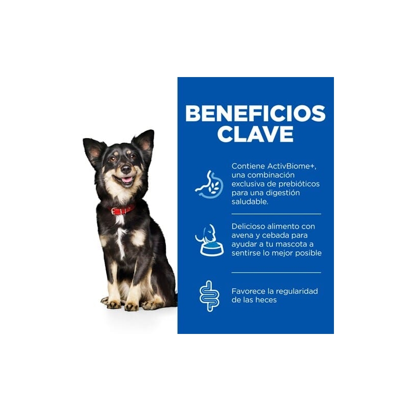 Hill’s Science Plan Perfect Digestion Small & Mini contiene la tecnología ActivBiome+, una mezcla exclusiva de prebióticos que equilibra el microbioma intestinal y favorece la digestión saludable en perros de pequeño tamaño.