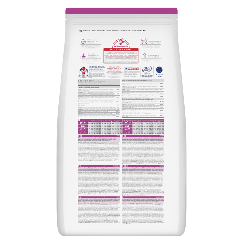Nuestra fórmula única Small & Mini también incorpora una combinación de antioxidantes para brindar soporte inmunológico a lo largo de toda la vida del cachorro. Este alimento es la elección ideal para cachorros de hasta 1 año de edad que pesen hasta 10 kg al completar su desarrollo, así como para perras en estado de gestación o lactancia. Sin embargo, no se recomienda para perros adultos o mayores, aquellos con problemas de obesidad o propensos a ello. Confía en HILL'S SCIENCE PLAN SMALL & MINI para el bienestar y desarrollo saludable de tu fiel compañero.