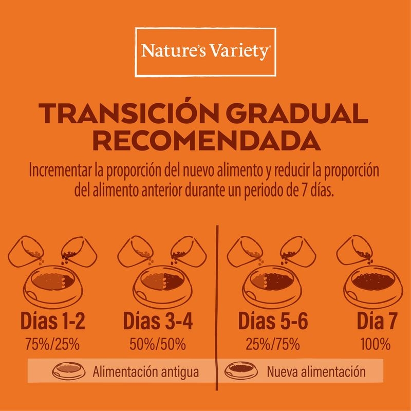 La fórmula de Natures Variety No Grain está pensada para apoyar el crecimiento y desarrollo saludable de tu cachorro, favoreciendo la formación de músculos fuertes y huesos sólidos. Este pienso está enriquecido con vitaminas y minerales que refuerzan el sistema inmunológico, ayudando a tu perro a enfrentar su día a día con energía y vitalidad.