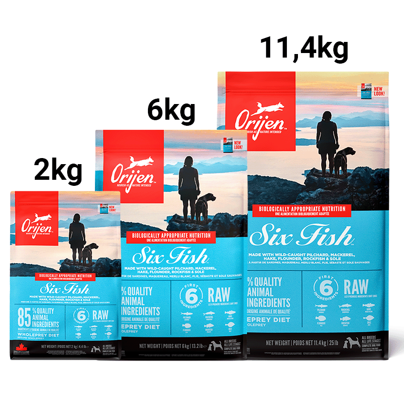 Este alimento de alta calidad, ORIJEN™ Six Fish™, proporciona una dieta rica en proteínas esenciales para tu perro.