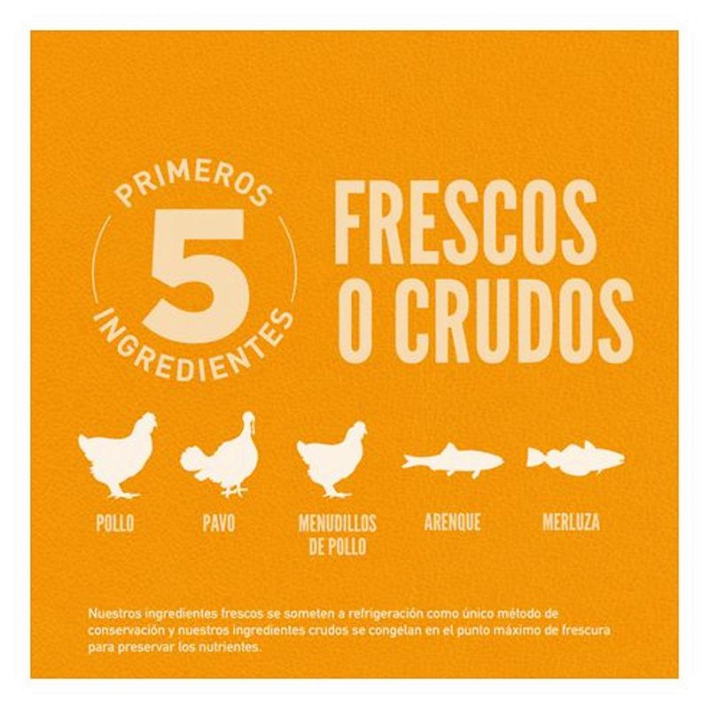 Este pienso para cachorros está compuesto por un 85%1 de ingredientes de origen animal de primera calidad, como pollo, pavo fresco o crudo, y pescado de origen sostenible y salvaje. Esta dieta está repleta de ingredientes de origen animal de presa entera, que incluyen aves, pescado, órganos y huesos, con el propósito de proporcionar la nutrición necesaria para el óptimo crecimiento de los cachorros. El resultado es un alimento para tu perro que no tiene comparación.