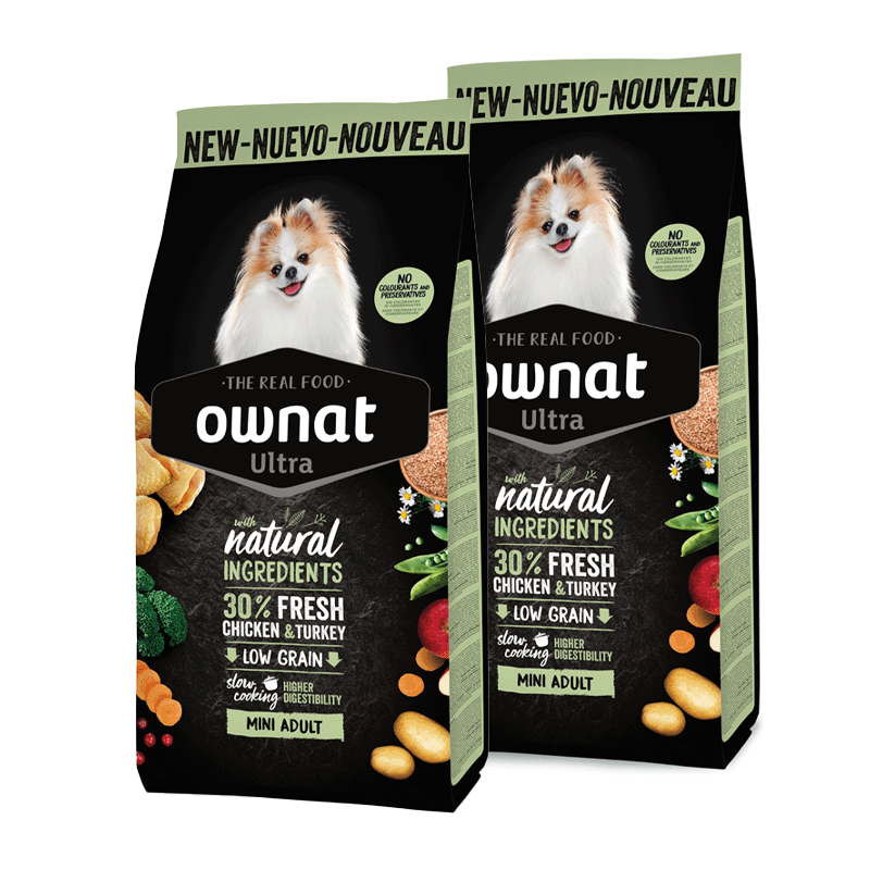 La combinación de ingredientes naturales hace que Ownat Ultra Mini Adult sea altamente digerible y de un sabor irresistible. También contiene glucosamina y condroitina para cuidar las articulaciones, además de estar enriquecido con vitaminas y minerales esenciales. Los ácidos grasos omega 3 y omega 6 promueven una piel y un pelaje saludables. Este pienso no contiene conservantes ni colorantes artificiales.