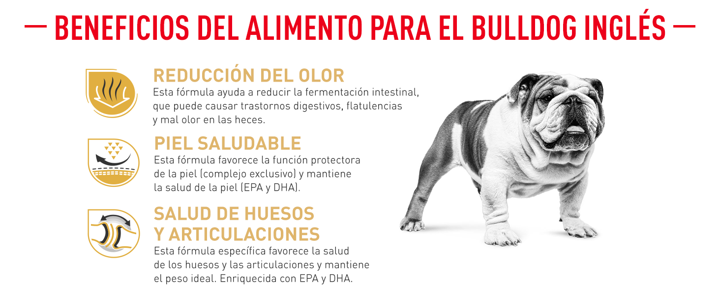 Como cada raza tiene sus propias necesidades, su Bulldog adulto requiere una dieta completa y equilibrada que contenga nutrientes específicos que contribuyan a mantener un buen estado de salud.