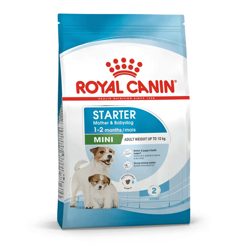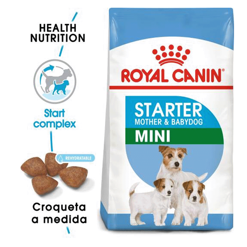 ROYAL CANIN® Mini Starter Mother & Babydog es una fórmula especialmente diseñada para satisfacer las necesidades nutricionales tanto de las madres lactantes como de sus cachorros en período de destete. Esta dieta es adecuada para perras adultas de razas pequeñas y cachorros de hasta 2 meses de edad, proporcionando una alta cantidad de energía para las madres y promoviendo un desarrollo saludable en los cachorros.