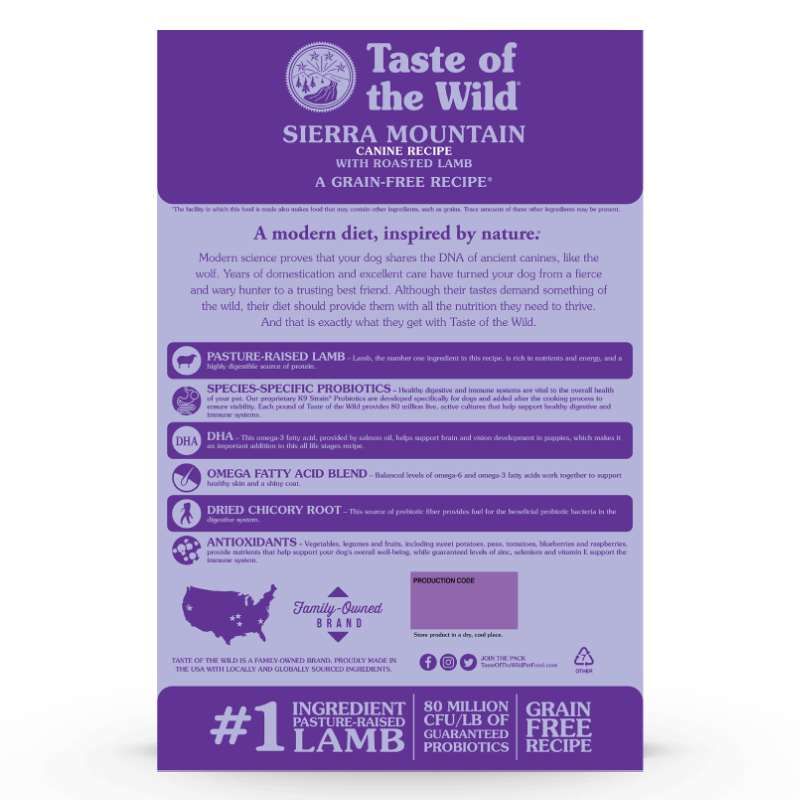 La receta de Taste of the Wild Sierra Mountain ofrece una mezcla única de cordero asado y huevos, junto con batatas y guisantes, que no solo proporciona energía esencial para la vitalidad de los perros, sino que también ofrece un sabor irresistiblemente delicioso.
