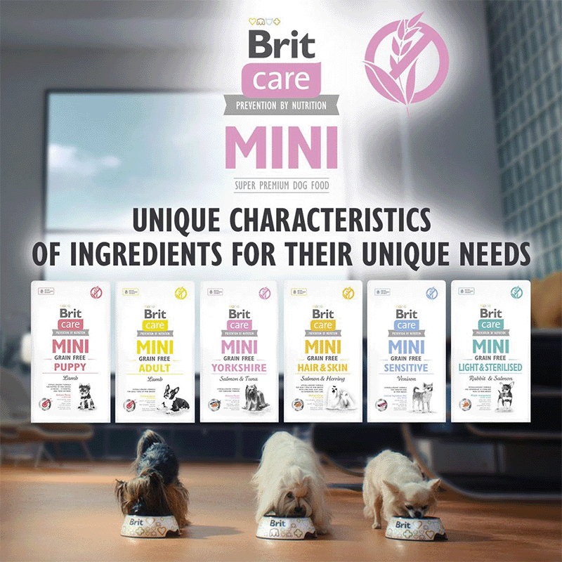 Brit Care Mini Grain-Free Light Esterilizados es la opción ideal para aquellos dueños que desean un alimento saludable y equilibrado, que cuide tanto el peso como la salud general de sus pequeños compañeros peludos.