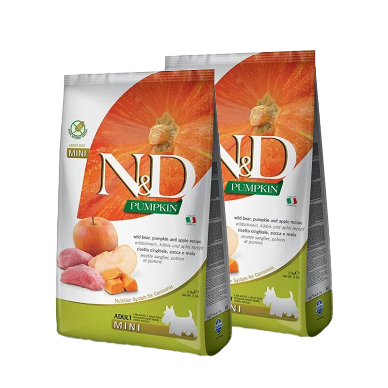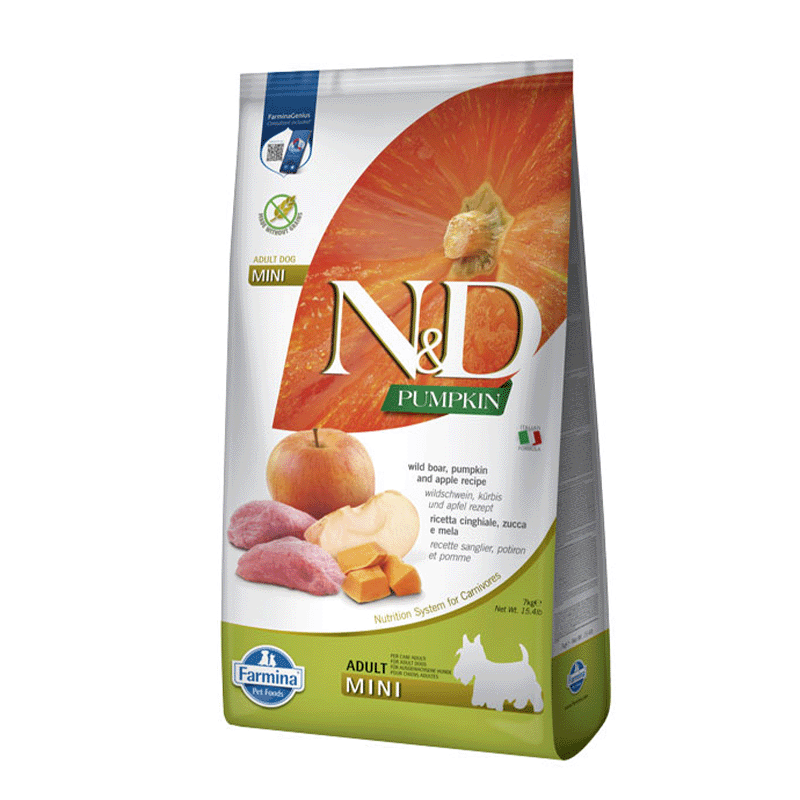 Farmina N&D Pumpkin Jabalí & Manzana Adult Mini es un alimento de primera calidad diseñado específicamente para perros adultos de razas pequeñas con un peso inferior a 10 kg. Este pienso ofrece una abundante cantidad de carne de jabalí, que proporciona proteínas esenciales y un sabor delicioso que a tu perro le encantará. Además, está enriquecido con frutas y verduras, como manzanas y calabazas, que aportan nutrientes adicionales y antioxidantes naturales.