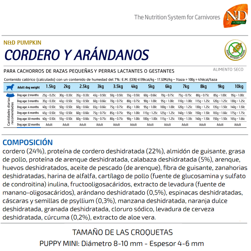 Mantener una alimentación saludable es esencial para un desarrollo óptimo del cuerpo del perro, por lo que el N&D Pumpkin Canine posee una composición adaptada para contribuir al bienestar muscular de los corderos gracias a su abundante proteína animal.