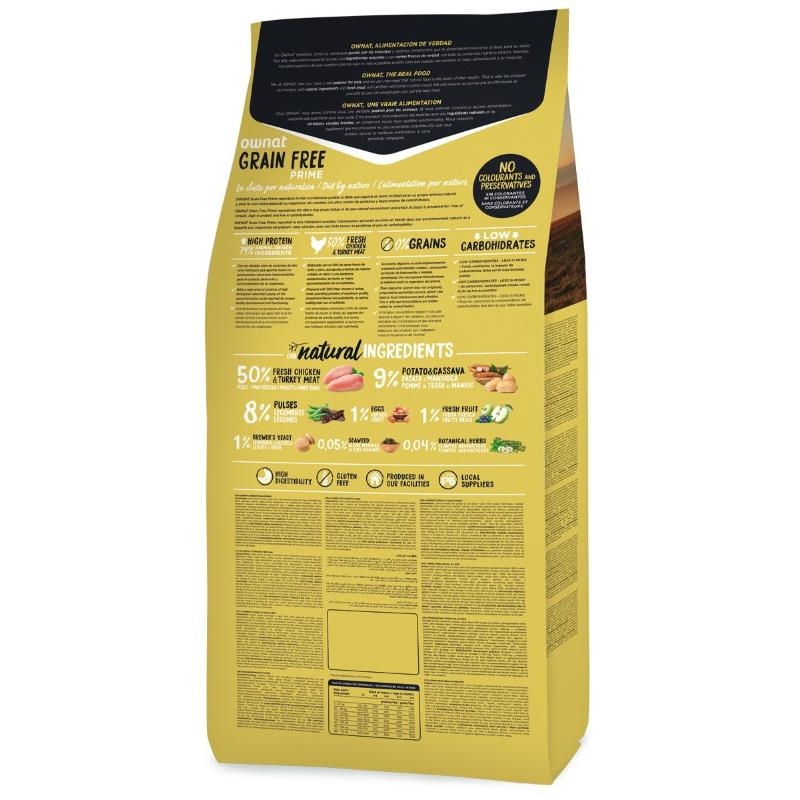 Ownat Grain Free Junior no solo se preocupa por el bienestar físico, sino que también evita el uso de conservantes y colorantes artificiales. Garantiza un desarrollo y crecimiento óptimos, ofreciendo una opción confiable y nutritiva para que tu cachorro crezca fuerte y saludable.