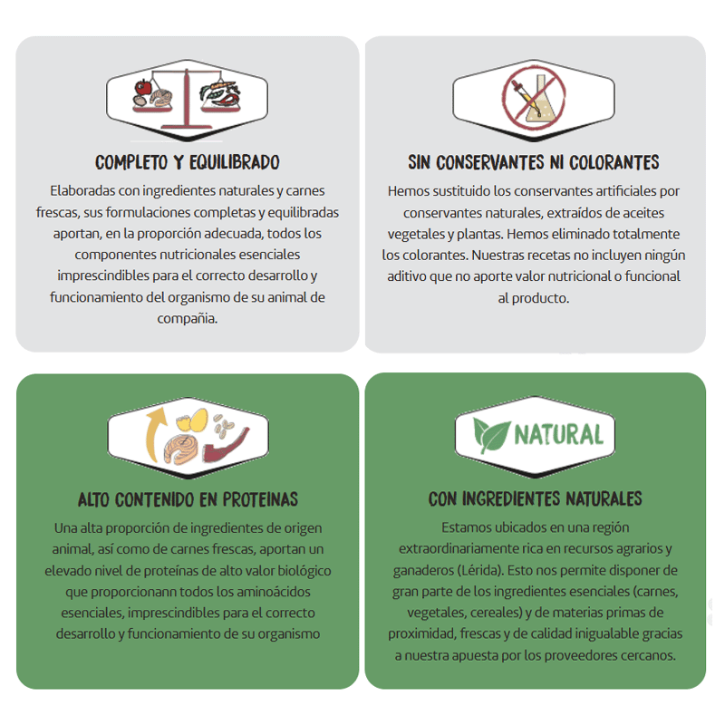 | Nutrición | Monoproteínico, Sin Cereales, Natural |