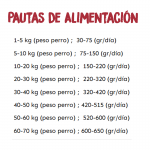 1-5 kg (peso perro) ; 30-75 (gr/día)