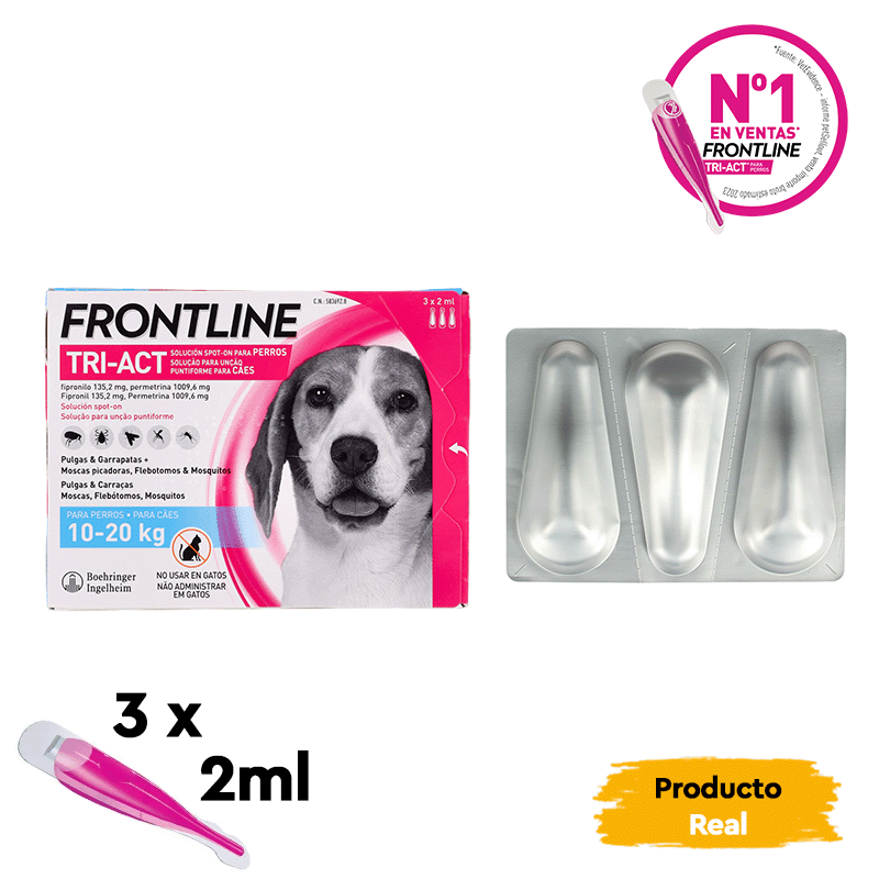 Disponible en Presentaciones Convenientes: Se encuentra disponible en cajas de 3 y 6 pipetas, adaptándose a las necesidades y preferencias del dueño del perro. Facilita la administración y el seguimiento del tratamiento para mantener la salud parasitaria de tu animal.