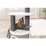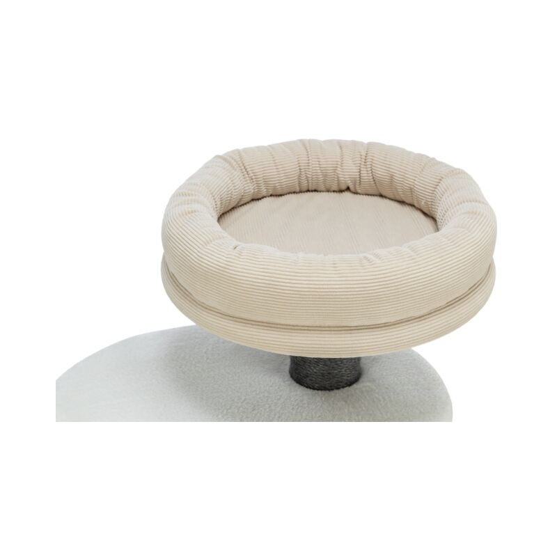 Este rascador cuenta con una plataforma acolchada equipada con una cama suave extraíble, ideal para que el gato pueda descansar cómodamente en altura. La cama puede retirarse y lavarse a mano, facilitando el mantenimiento y garantizando una correcta higiene.