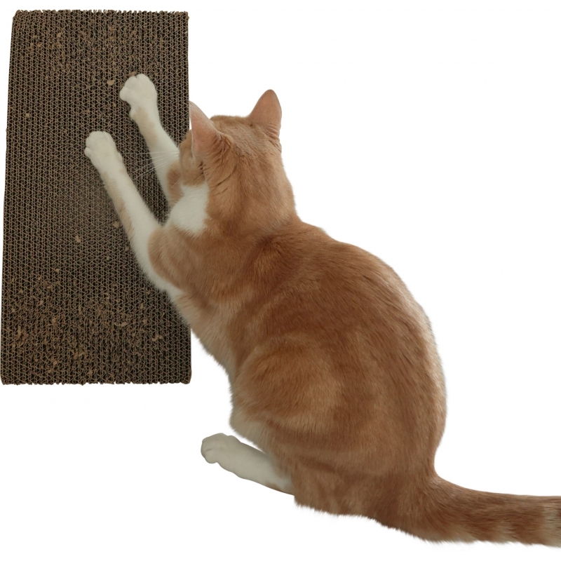 Fabricado en cartón sólido y resistente, ofrece la dureza adecuada para el afilado eficaz de las uñas, contribuyendo al desgaste correcto de la capa externa de las garras y a la estimulación de las glándulas de las almohadillas. Sus 45 cm de longitud permiten que el gato se estire por completo al rascar, favoreciendo también el estiramiento muscular y el bienestar general.