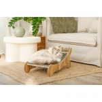 Rascador 2 en 1 para gatos con hamaca y alfombra de sisal, elegante y confortable, fabricado con madera FSC®, ideal para descansar y rascar a diario.