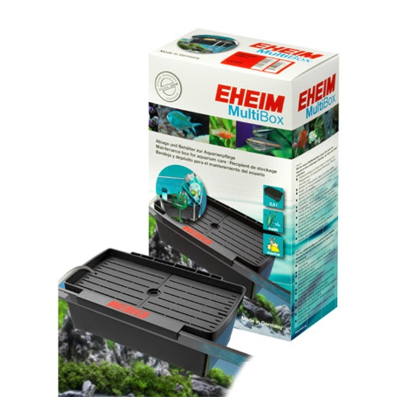 La EHEIM MultiBox es una caja multifuncional para colgar en el cristal del acuario o en la puerta del mueble, creada para aportar orden y practicidad en el mantenimiento diario.
