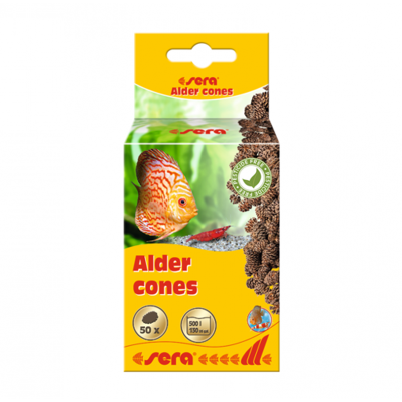Sera Alder Cones son piñas de aliso naturales para acuarios que ayudan a bajar el pH de manera natural, liberan taninos beneficiosos y crean aguas negras saludables para peces e invertebrados.