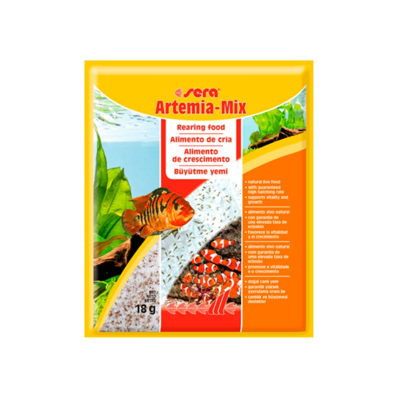 Sera Artemia-Mix es una mezcla instantánea para la cría rápida de nauplios de artemia, proporcionando alimento vivo altamente nutritivo para peces e invertebrados marinos y de agua dulce.