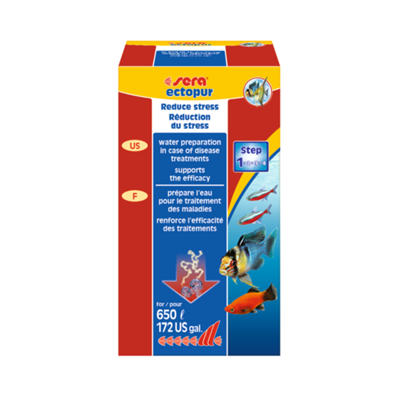Acondicionador antiestrés que libera oxígeno activo y sales minerales para potenciar tratamientos frente a enfermedades externas y mejorar el bienestar general de los peces.