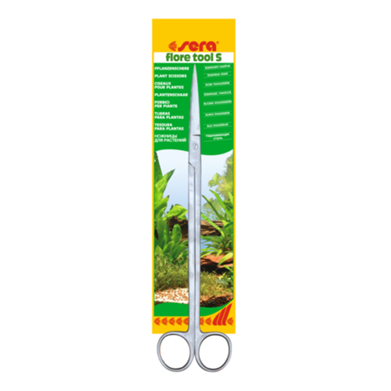 Sera Flore Tool S son tijeras de acero inoxidable pensadas para el mantenimiento cómodo y preciso de plantas de acuario, ideales para recortar tallos, hojas y raíces con facilidad.