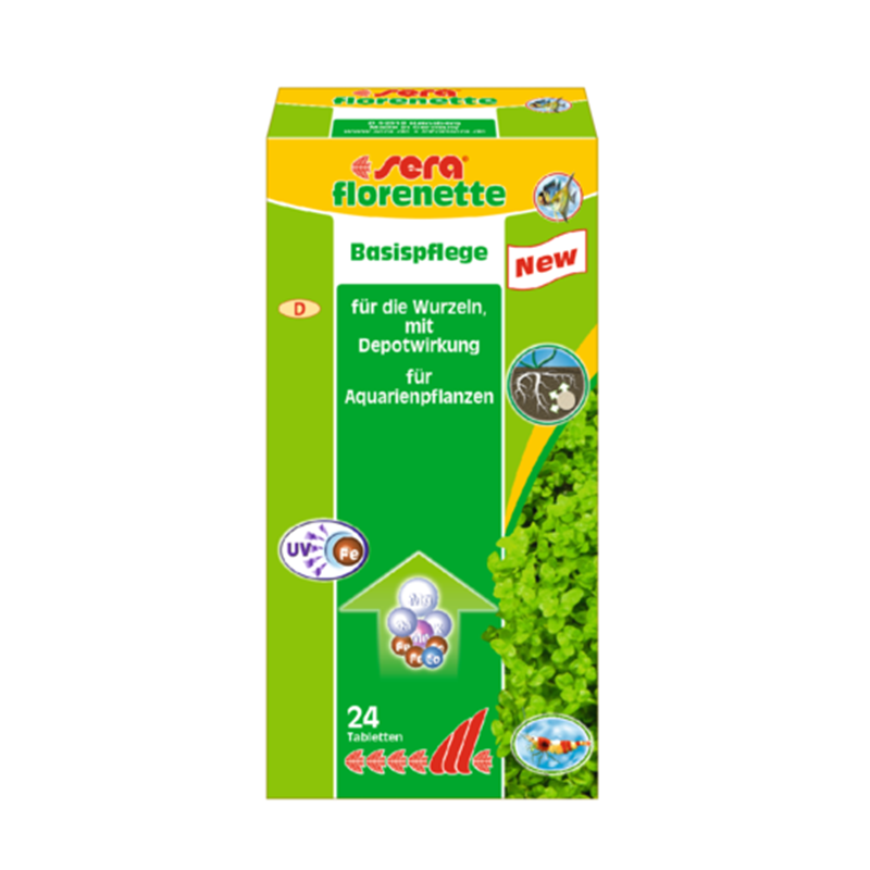 Sera Florenette es un abono en pastillas diseñado para plantas acuáticas que absorben nutrientes principalmente por las raíces, proporcionando minerales y oligoelementos esenciales de forma continua.