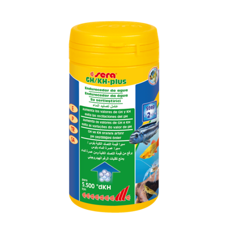 Sera GH/KH-plus incrementa de forma controlada la dureza total (GH) y la dureza de carbonatos (KH), mejorando el aporte mineral y evitando variaciones bruscas del pH.