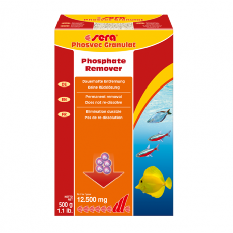 Sera Phosvec Granulat reduce el fosfato del agua del acuario de forma rápida y duradera, ayudando a prevenir algas y a mantener un entorno más equilibrado.