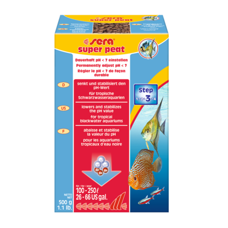 Sera Super Peat es una turba natural para acuarios de agua dulce que crea un efecto tropical de agua oscura, estabiliza un pH ligeramente ácido y reduce la dureza del agua de manera natural y prolongada.