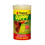 Alimento en escamas para Guppies con spirulina y sal marina natural, formulado para favorecer crecimiento, digestión y reproducción saludable.