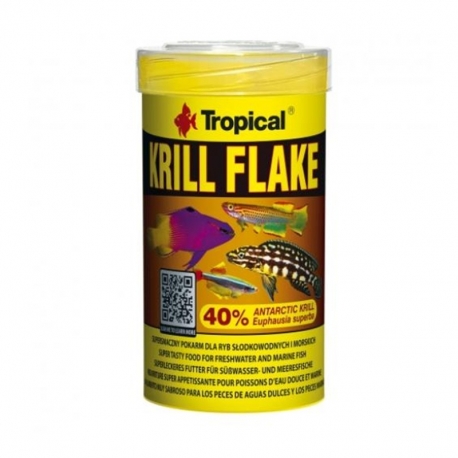 Tropical Krill Flakes es un alimento en escamas con 40 % de krill antártico, muy palatable y eficaz para realzar la coloración.
