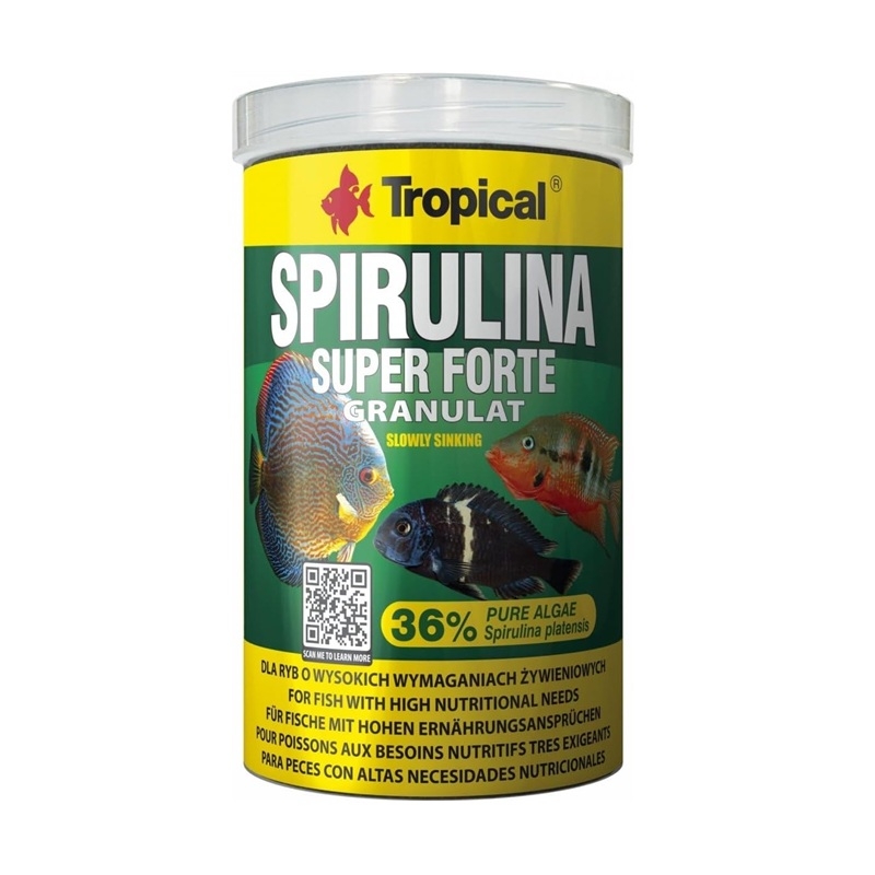 Tropical Super Spirulina Forte Granulat es un alimento granulado con 36 % de spirulina destinado a peces herbívoros y omnívoros con dieta vegetal.