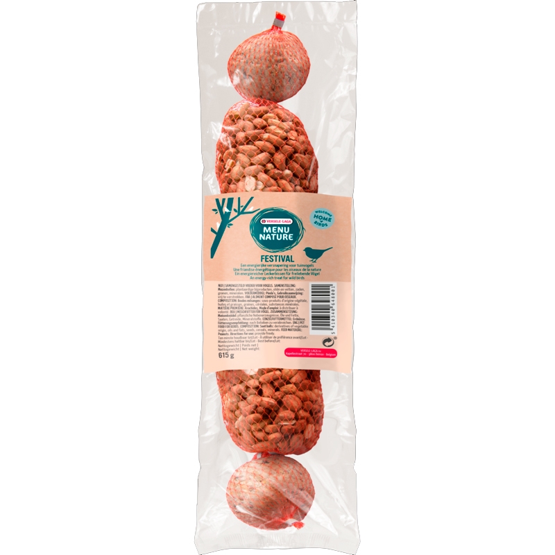 Las Versele Laga Menu Festival Bolas de Grasa con Cacahuetes son un alimento saludable pensado para pájaros silvestres. La mezcla de grasas de calidad y cacahuetes aporta energía y nutrientes esenciales para mantenerlos activos y fuertes.