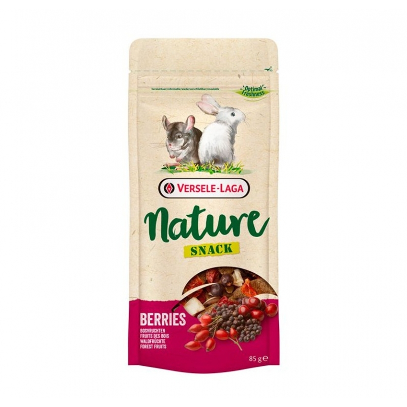 Versele Laga Nature Berries Snack es un aperitivo natural para conejos y roedores, preparado con bayas deshidratadas que aportan antioxidantes, vitaminas y refuerzan la digestión.