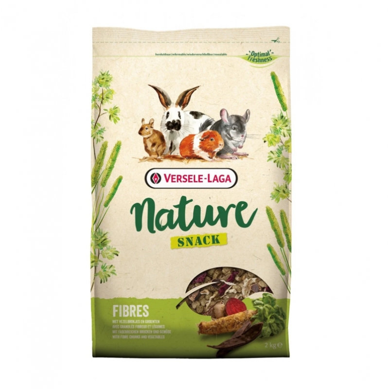 Nature Fibres Snack de Versele Laga es un snack natural y nutritivo para roedores herbívoros. Su alta fibra y ingredientes naturales favorecen digestión sana y desgaste dental natural, manteniendo dientes fuertes y saludables.