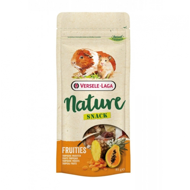 Versele Laga Nature Fruities Snack es un premio natural para roedores y conejos elaborado con frutas deshidratadas seleccionadas que aportan vitaminas y minerales esenciales. Su sabor delicioso y textura crujiente lo convierten en una excelente opción para premiar a tu animal de forma saludable.