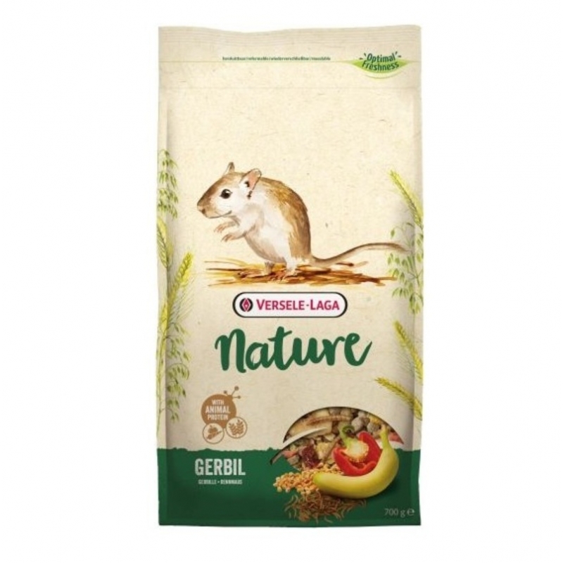 Versele Laga Nature Gerbil es un pienso natural para gerbos, elaborado con cereales, semillas, frutas y vegetales, que favorece la digestión y asegura nutrición completa.