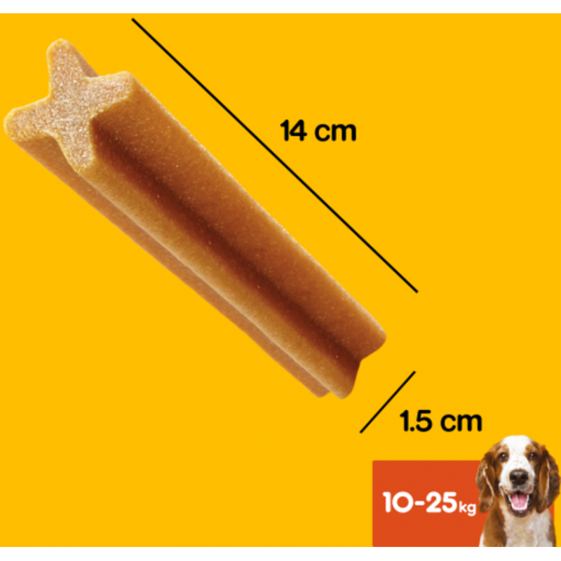 Snack dental para perros medianos (10-25 kg) que favorece la salud dental y ayuda a prevenir enfermedades periodontales, manteniendo una óptima higiene bucal.