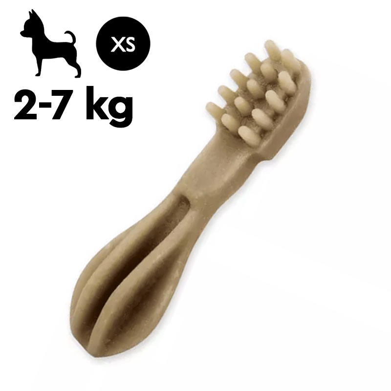 Los snacks dentales WHIMZEES en forma de cepillo de dientes ofrecen una combinación perfecta de cuidado dental y placer de masticar para su perro mini (hasta 4kg de peso). Sus diseños únicos y su textura basada en vegetales no solo promueven la limpieza dental, sino que también contribuyen al flujo sanguíneo entre las encías, previniendo el mal aliento y la acumulación de placa y sarro dental.