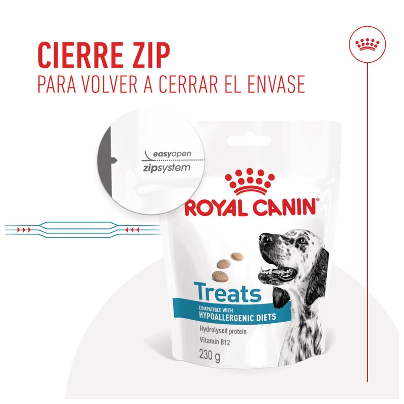 Los snacks hipoalergénicos de Royal Canin están formulados con proteína hidrolizada y vitamina B12, lo que los convierte en la opción perfecta para perros con alergias o intolerancias. Estos bocados blandos ofrecen sabor y nutrición sin poner en riesgo la dieta especial.
