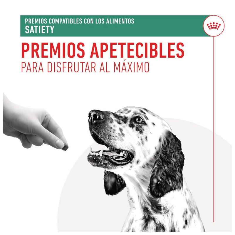 Los Satiety Treats están diseñados para perros adultos con sobrepeso, ayudando a controlar la ingesta calórica mientras proporcionan un premio sabroso. Su fórmula ayuda a mantener la masa muscular y favorece la sensación de saciedad.